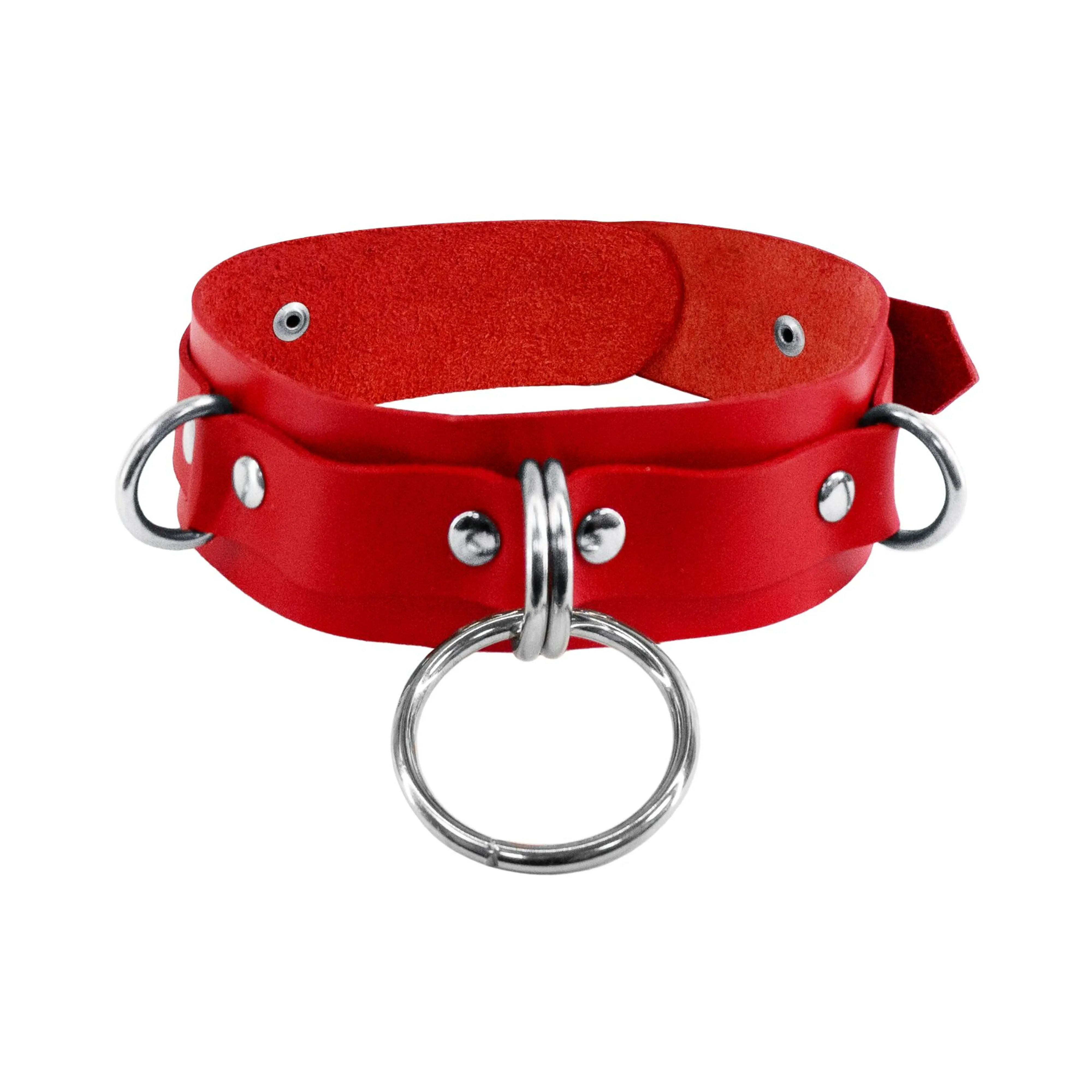 Нашийник для фіксації з натуральної шкіри Feral Feelings - D-Rings Red