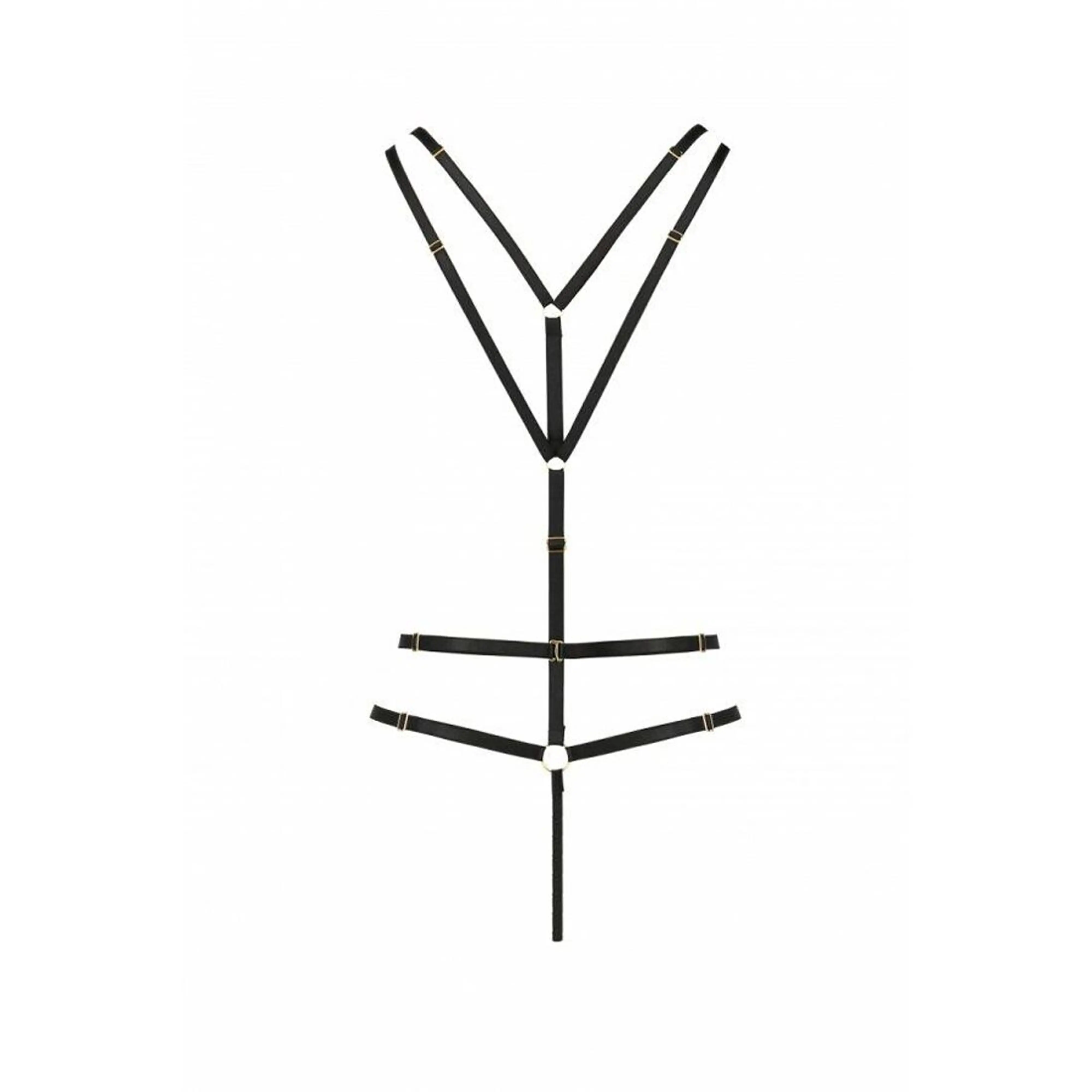 Спеціальна пропозиція для тих, хто любить експериментувати, не боїться незвичайних і відвертих моделей! Пропонуємо купити відкритий боді зі стреп MEGGY black L/XL - Passion Exclusive, що складається з ременів і прозорої вставки. Особлива конструкція візуально звужує талію, а золотисті вставки роблять боді гарним і збудливим.