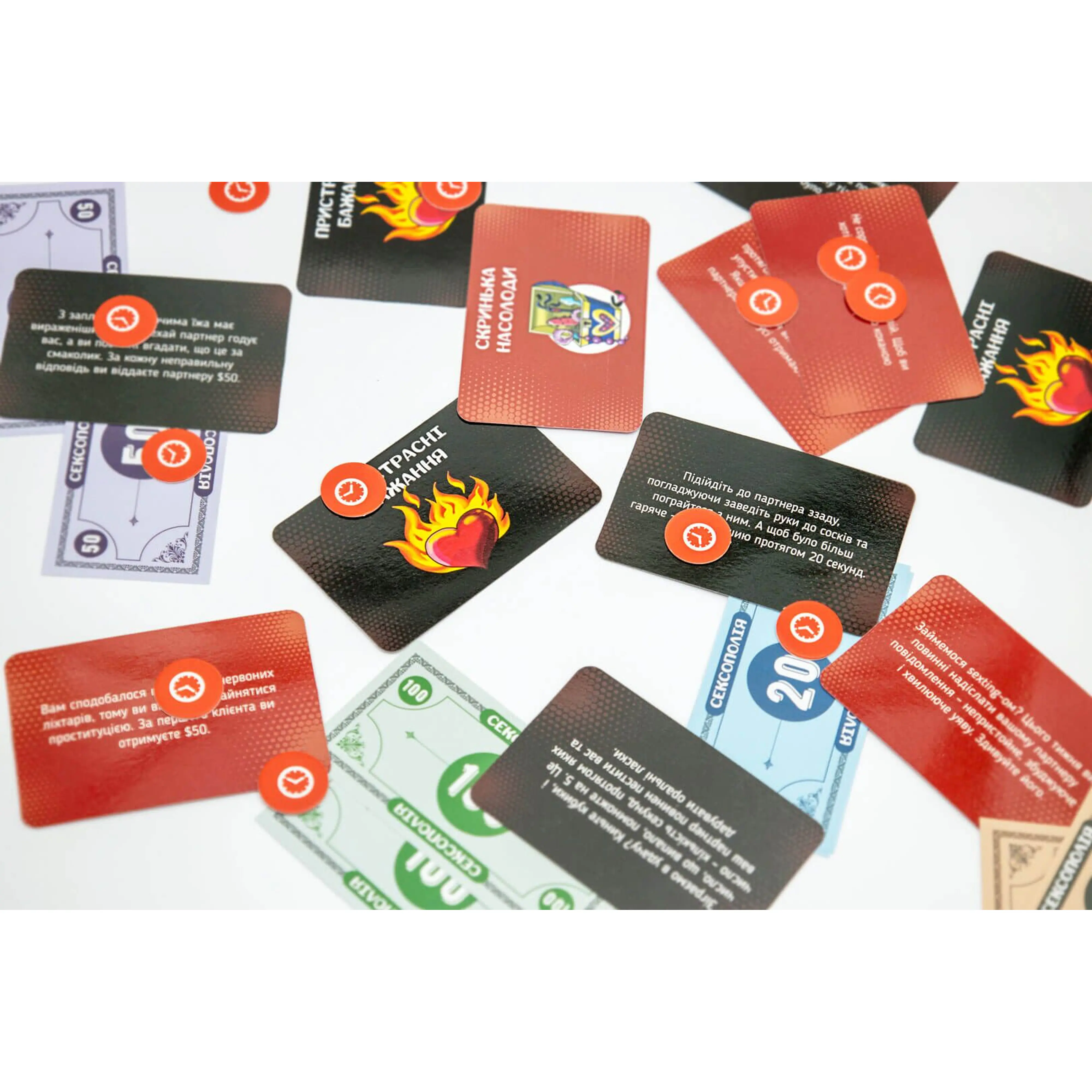 Також в процесі гри можна купувати фішки часу, які збільшують тривалість виконуваного завдання. Всі завдання різного ступеня відвертості, зухвалості та сексуальності, іноді з легким відтінком вульгарності. Від легких поцілунків до ... Відкрийте коробку і самі все дізнаєтеся!