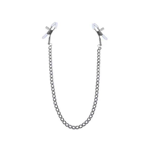 Затискачі для сосків з ланцюжком Feral Feelings - Nipple clamps Classic, срібло/білий